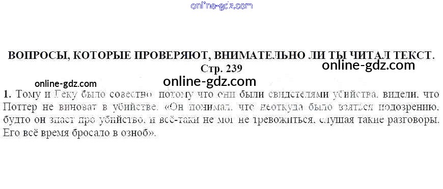 Готовые домашние задания по Литературе за 5 класс Учебник Москвин Алгоритм успеха 2020 - Вопросы, которые проверяют, внимательно ли ты читал текст (стр. 239) Приключения Тома Сойера 1
