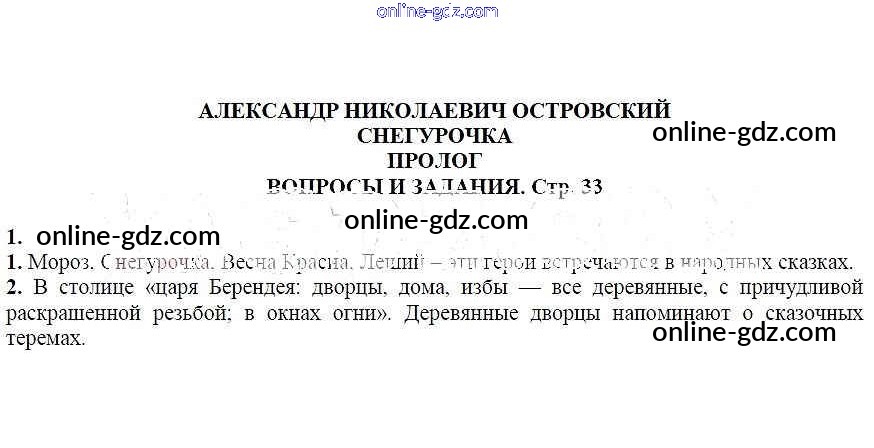Готовые домашние задания по Литературе за 6 класс Учебник-хрестоматия Курдюмова Вертикаль 2018 - Вопросы и задания Александр Николаевич Островский. Снегурочка. Пролог 1