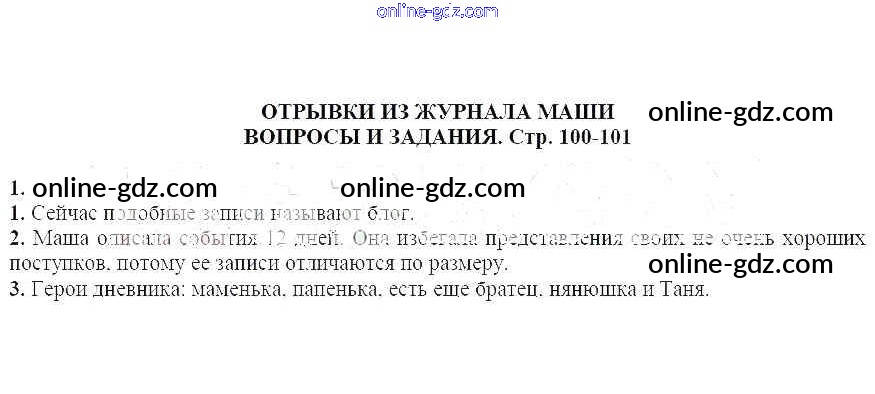 Готовые домашние задания по Литературе за 6 класс Учебник-хрестоматия Курдюмова Вертикаль 2018 - Вопросы и задания Отрывки из журнала Маши 1