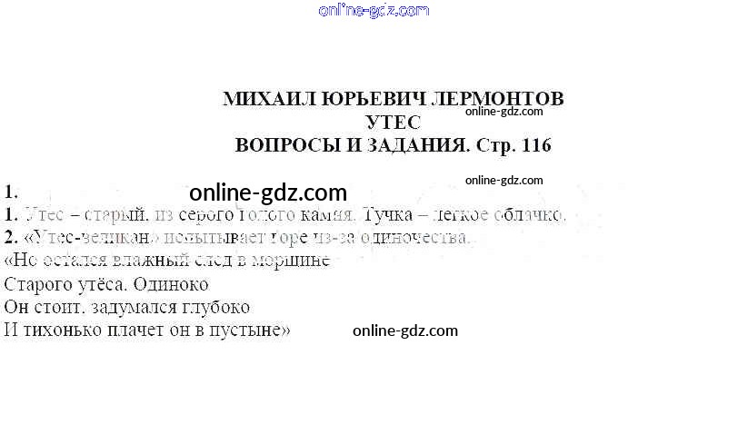 Готовые домашние задания по Литературе за 6 класс Учебник-хрестоматия Курдюмова Вертикаль 2018 - Вопросы и задания Михаил Юрьевич Лермонтов. Утёс 1