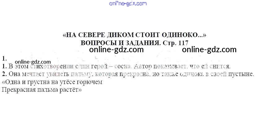 Готовые домашние задания по Литературе за 6 класс Учебник-хрестоматия Курдюмова Вертикаль 2018 - Вопросы и задания На севере диком стоит одиноко 1