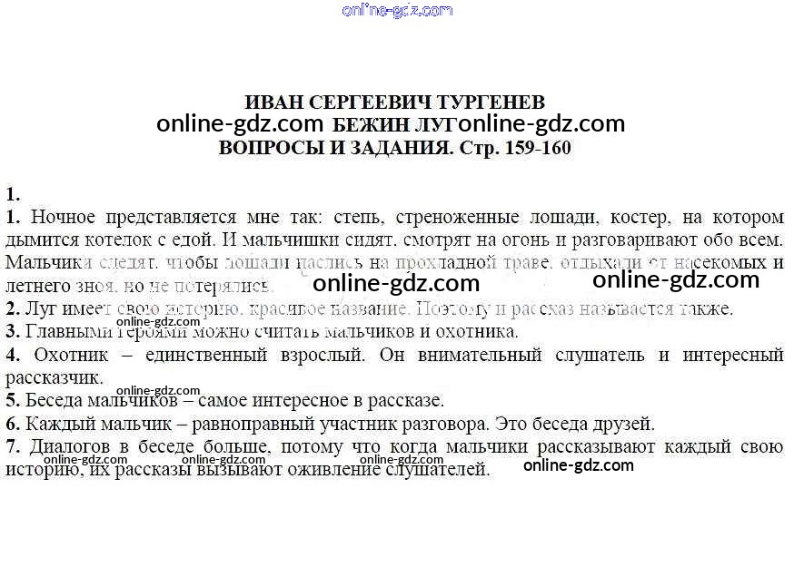 Готовые домашние задания по Литературе за 6 класс Учебник-хрестоматия Курдюмова Вертикаль 2018 - Вопросы и задания Иван Сергеевич Тургенев. Бежин луг 1