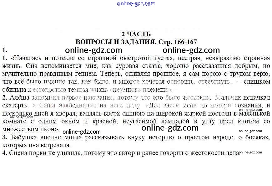 Готовые домашние задания по Литературе за 6 класс Учебник-хрестоматия Курдюмова Вертикаль 2018 - Вопросы и задания Максим Горький. Детство. 2 часть 1