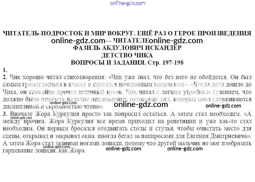 Готовые домашние задания по Литературе за 6 класс Учебник-хрестоматия Курдюмова Вертикаль 2018 - Вопросы и задания Фазиль Абдулович Искандер. Детство Чика 1
