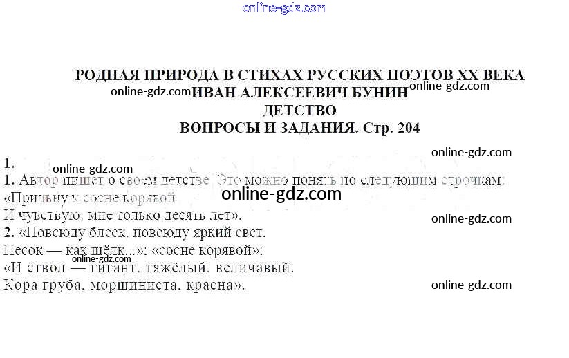 Готовые домашние задания по Литературе за 6 класс Учебник-хрестоматия Курдюмова Вертикаль 2018 - Вопросы и задания Родная природа в стихах русских поэтов XX века. Иван Алексеевич Бунин. Детство 1