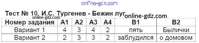Готовые домашние задания по Литературе за 6 класс Контрольно-измерительные материалы (КИМ) Королева 2015 - Тесты Тест №10. Бежин луг