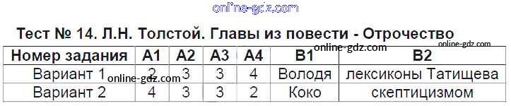 Готовые домашние задания по Литературе за 6 класс Контрольно-измерительные материалы (КИМ) Королева 2015 - Тесты Тест №14. Главы из повести - Отрочество