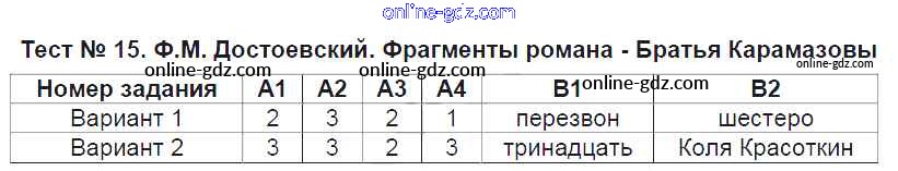 Готовые домашние задания по Литературе за 6 класс Контрольно-измерительные материалы (КИМ) Королева 2015 - Тесты Тест №15. Фрагменты романа - Братья Карамазовы