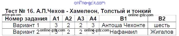 Готовые домашние задания по Литературе за 6 класс Контрольно-измерительные материалы (КИМ) Королева 2015 - Тесты Тест №16. Хамелеон, Толстый и тонкий