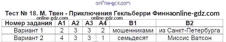 Готовые домашние задания по Литературе за 6 класс Контрольно-измерительные материалы (КИМ) Королева 2015 - Тесты Тест №18. Приключения Гекльберри Финна