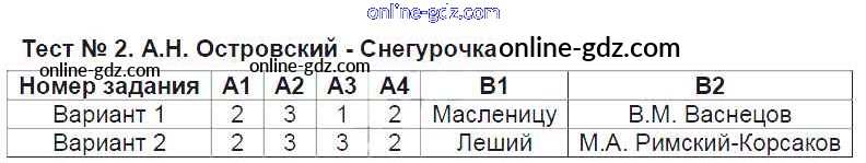 Готовые домашние задания по Литературе за 6 класс Контрольно-измерительные материалы (КИМ) Королева 2015 - Тесты Тест №2. Снегурочка