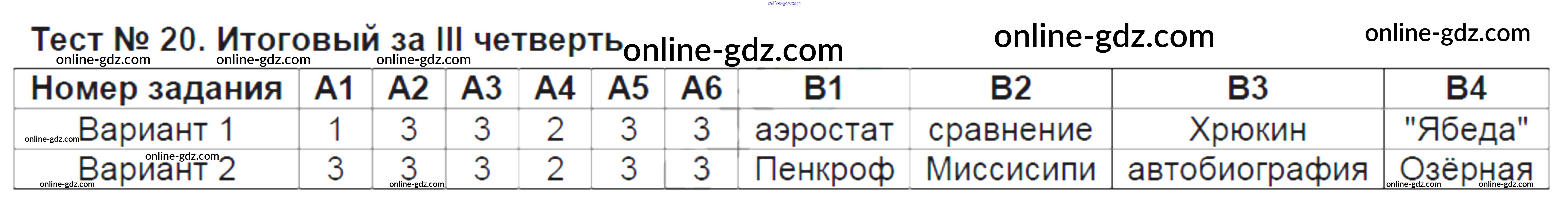 Тест №20. Итоговый за III четверть