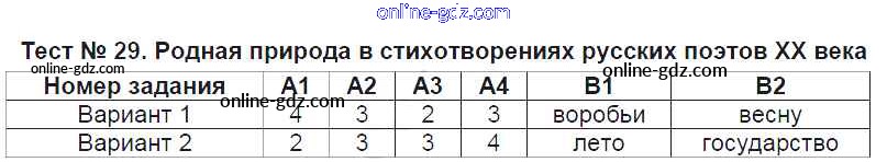 Готовые домашние задания по Литературе за 6 класс Контрольно-измерительные материалы (КИМ) Королева 2015 - Тесты Тест №29. Родная природа в стихотворениях русских поэтов ХХ века