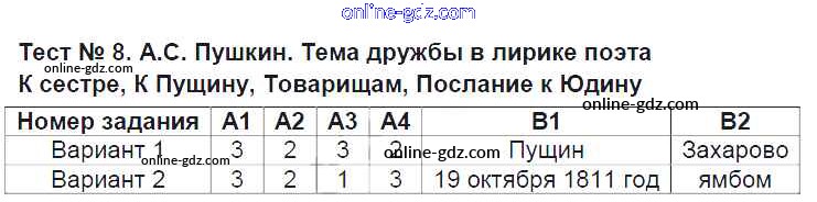 Готовые домашние задания по Литературе за 6 класс Контрольно-измерительные материалы (КИМ) Королева 2015 - Тесты Тест №8. Тема дружбы в лирике поэта