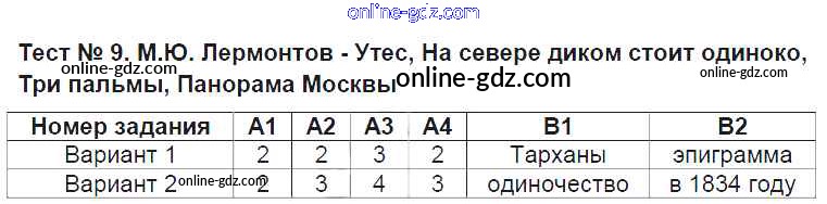 Готовые домашние задания по Литературе за 6 класс Контрольно-измерительные материалы (КИМ) Королева 2015 - Тесты Тест №9. Утес, На севере диком стоит одиноко