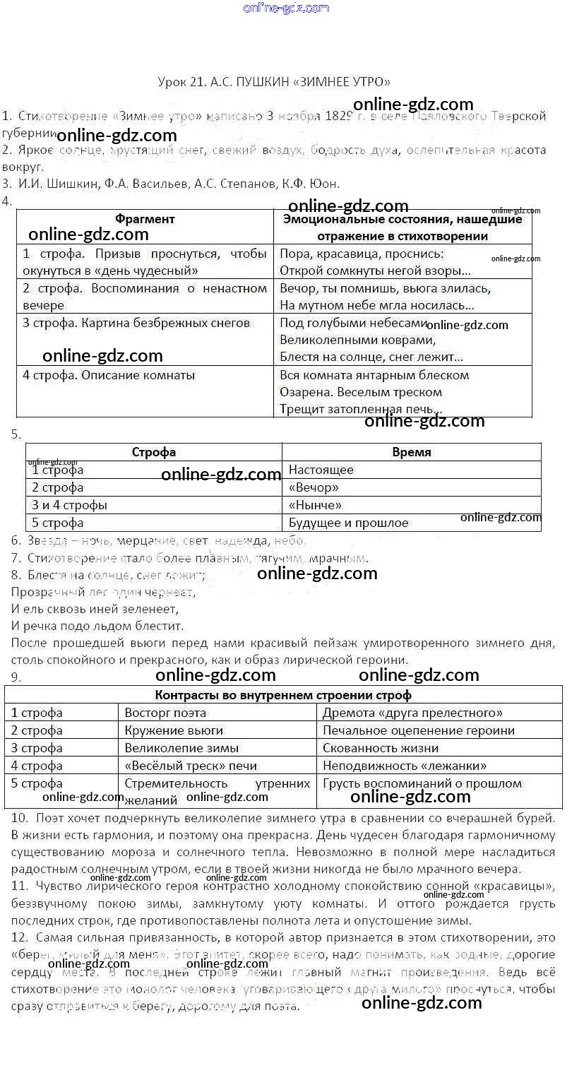 Готовые домашние задания по Литературе за 6 класс Рабочая тетрадь Соловьева Инновационная школа 2016 - Уроки 21