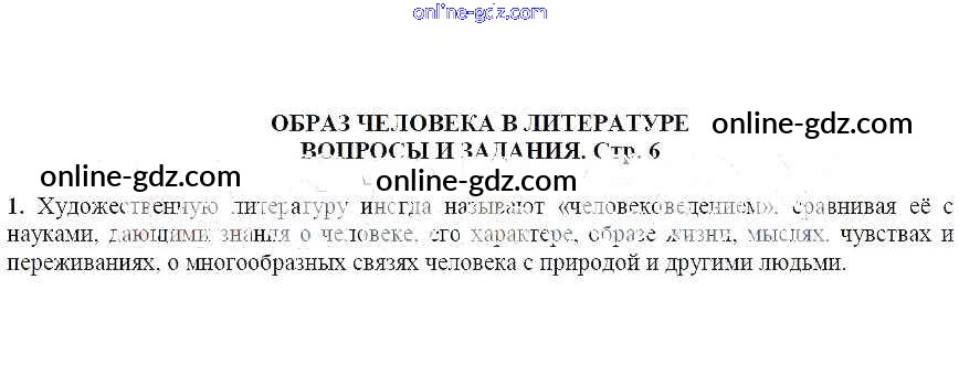 Готовые домашние задания по Литературе за 6 класс Учебник Чертов, Трубина Академический школьный учебник 2018 - Вопросы и задания Образ человека в литературе 1