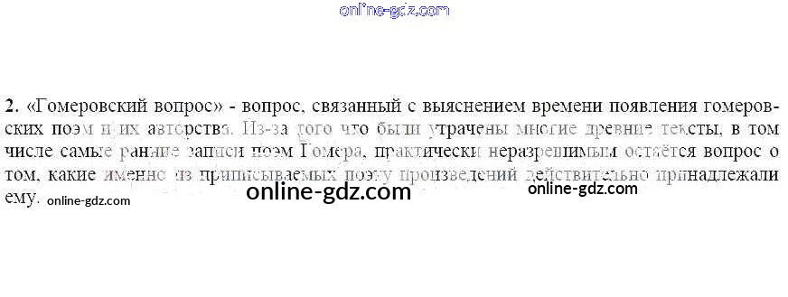 Готовые домашние задания по Литературе за 6 класс Учебник Чертов, Трубина Академический школьный учебник 2018 - Вопросы и задания Гомер 2