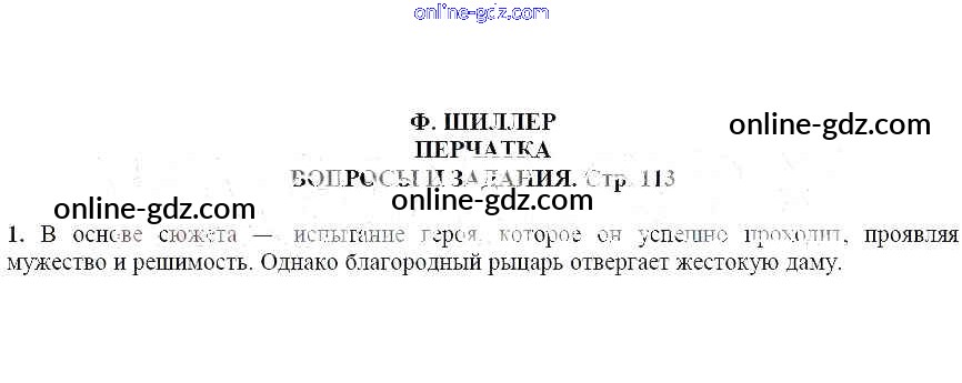 Готовые домашние задания по Литературе за 6 класс Учебник Чертов, Трубина Академический школьный учебник 2018 - Вопросы и задания Ф. Шиллер. Перчатка 1