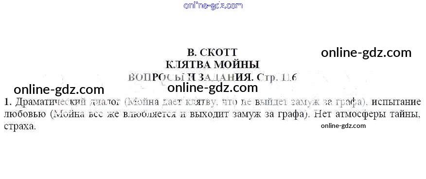 Готовые домашние задания по Литературе за 6 класс Учебник Чертов, Трубина Академический школьный учебник 2018 - Вопросы и задания В. Скотт. Клятва Мойны 1