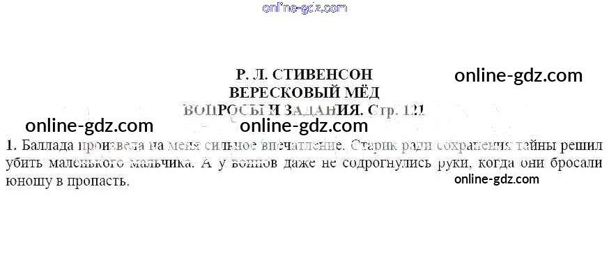 Готовые домашние задания по Литературе за 6 класс Учебник Чертов, Трубина Академический школьный учебник 2018 - Вопросы и задания Р. Л. Стивенсон. Вересковый мёд 1
