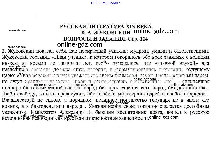 Готовые домашние задания по Литературе за 6 класс Учебник Чертов, Трубина Академический школьный учебник 2018 - Вопросы и задания В. А. Жуковский 2