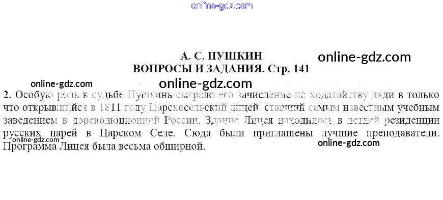 Готовые домашние задания по Литературе за 6 класс Учебник Чертов, Трубина Академический школьный учебник 2018 - Вопросы и задания А. С. Пушкин 2
