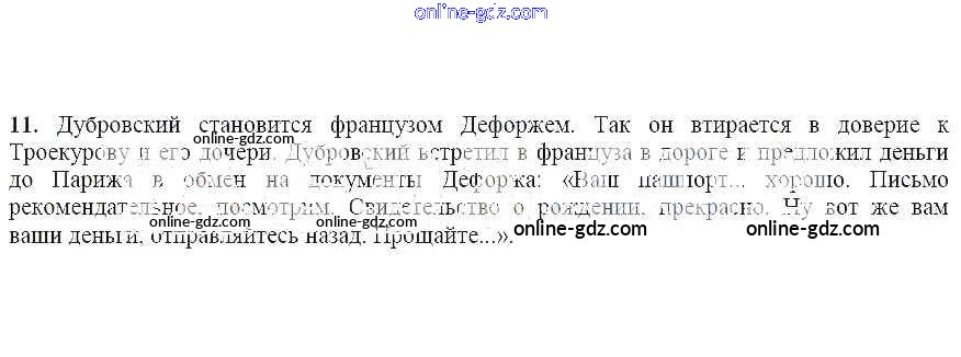 Готовые домашние задания по Литературе за 6 класс Учебник Чертов, Трубина Академический школьный учебник 2018 - Вопросы и задания Дубровский 11