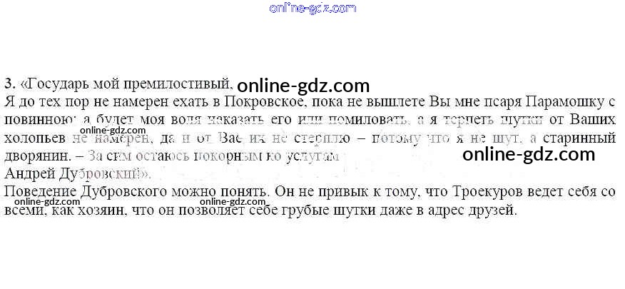 Готовые домашние задания по Литературе за 6 класс Учебник Чертов, Трубина Академический школьный учебник 2018 - Вопросы и задания Дубровский 3