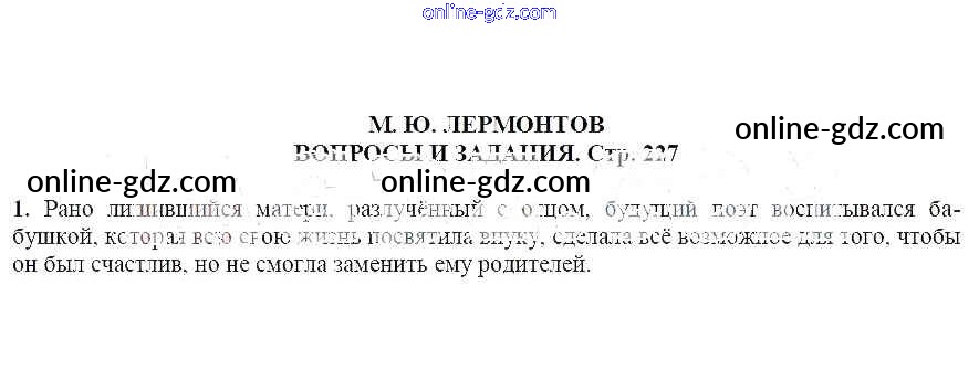 Готовые домашние задания по Литературе за 6 класс Учебник Чертов, Трубина Академический школьный учебник 2018 - Вопросы и задания М. Ю. Лермонтов 1