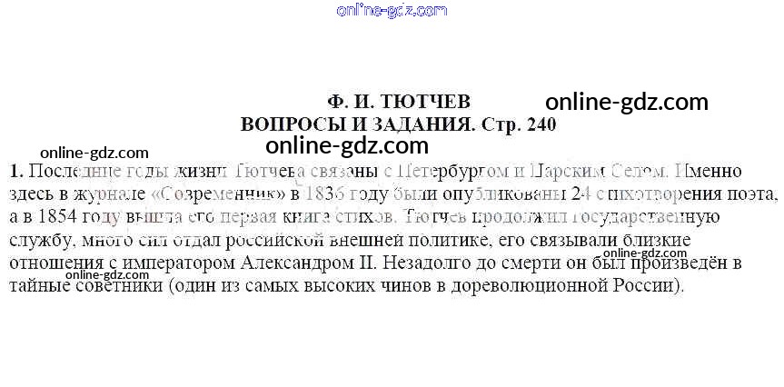 Готовые домашние задания по Литературе за 6 класс Учебник Чертов, Трубина Академический школьный учебник 2018 - Вопросы и задания Ф. И. Тютчев 1