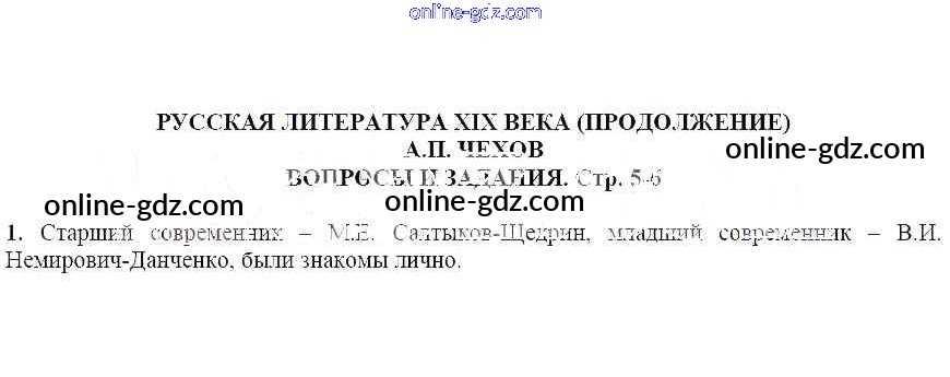 Готовые домашние задания по Литературе за 6 класс Учебник Чертов, Трубина Академический школьный учебник 2018 - Вопросы и задания А. П. Чехов 1