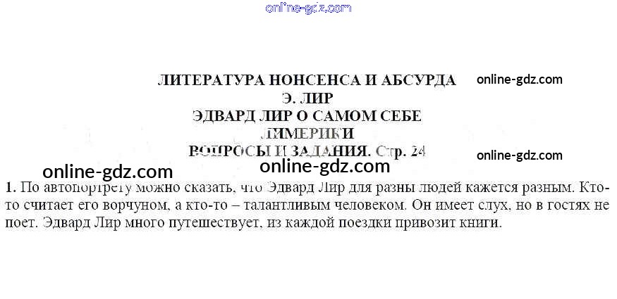 Готовые домашние задания по Литературе за 6 класс Учебник Чертов, Трубина Академический школьный учебник 2018 - Вопросы и задания Э. Лир. Эдвард Лир о самом себе 1