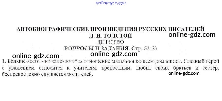 Готовые домашние задания по Литературе за 6 класс Учебник Чертов, Трубина Академический школьный учебник 2018 - Вопросы и задания Л. Н. Толстой. Детство 1