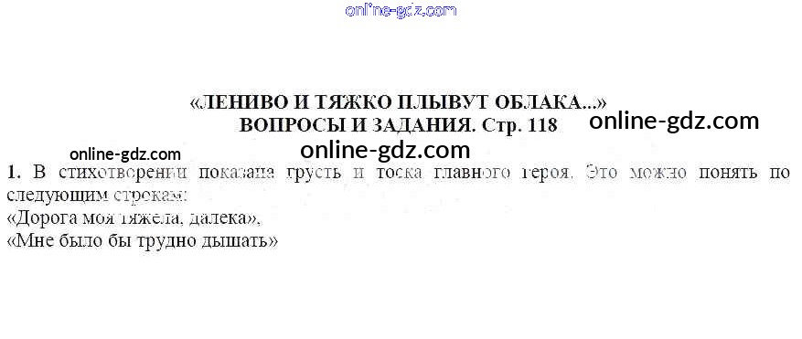 Готовые домашние задания по Литературе за 6 класс Учебник Чертов, Трубина Академический школьный учебник 2018 - Вопросы и задания «Лениво и тяжко плывут облака.» 1