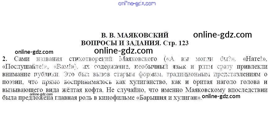 Готовые домашние задания по Литературе за 6 класс Учебник Чертов, Трубина Академический школьный учебник 2018 - Вопросы и задания B. В. Маяковский 2