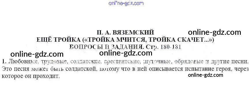 Готовые домашние задания по Литературе за 6 класс Учебник Чертов, Трубина Академический школьный учебник 2018 - Вопросы и задания П. А. Вяземский. Ещё тройка («Тройка мчится, тройка скачет.») 1