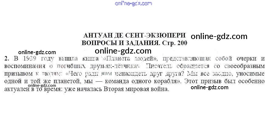 Готовые домашние задания по Литературе за 6 класс Учебник Чертов, Трубина Академический школьный учебник 2018 - Вопросы и задания A. де Сент-Экзюпери 2