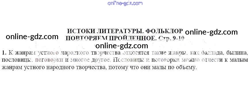 Готовые домашние задания по Литературе за 6 класс Учебник Ланин, Устинова Алгоритм успеха 2019 - Повторяем пройденное Истоки литературы. Фольклор 1