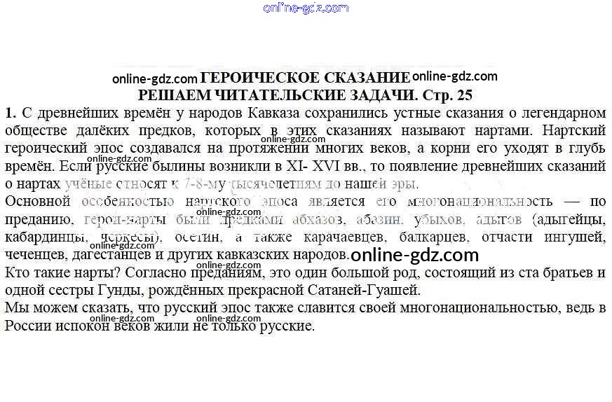 Готовые домашние задания по Литературе за 6 класс Учебник Ланин, Устинова Алгоритм успеха 2019 - Решаем читательские задачи Героическое сказание 1