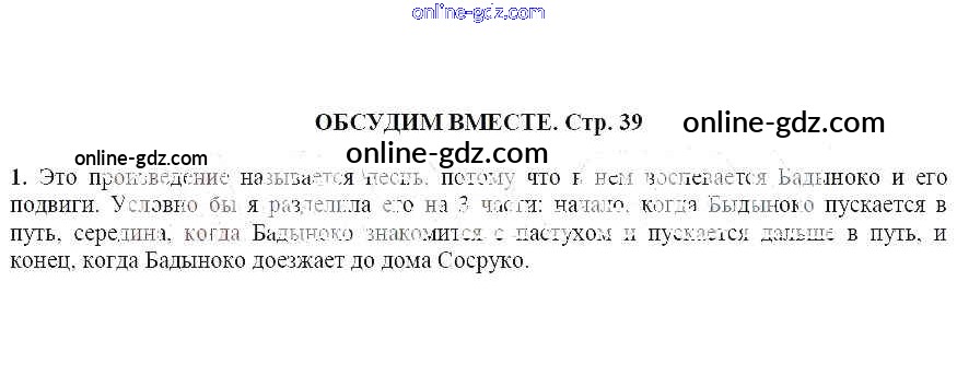 Готовые домашние задания по Литературе за 6 класс Учебник Ланин, Устинова Алгоритм успеха 2019 - Обсудим вместе Песнь о Бадыноко 1