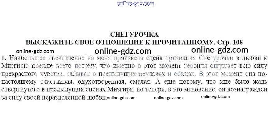 Готовые домашние задания по Литературе за 6 класс Учебник Ланин, Устинова Алгоритм успеха 2019 - Выскажите свое отношение к прочитанному Снегурочка 1