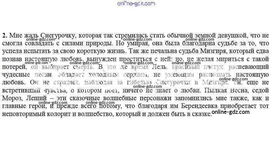 Готовые домашние задания по Литературе за 6 класс Учебник Ланин, Устинова Алгоритм успеха 2019 - Выскажите свое отношение к прочитанному Снегурочка 2