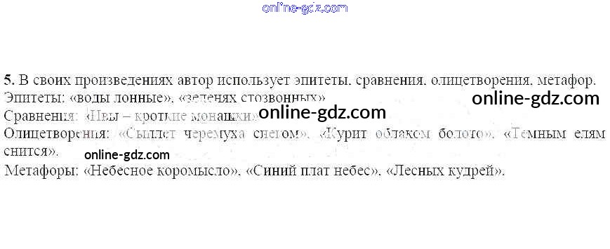 Готовые домашние задания по Литературе за 6 класс Учебник Ланин, Устинова Алгоритм успеха 2019 - Решаем читательские задачи Стихотворения поэтов XX века. Сергей Александрович Есенин 5