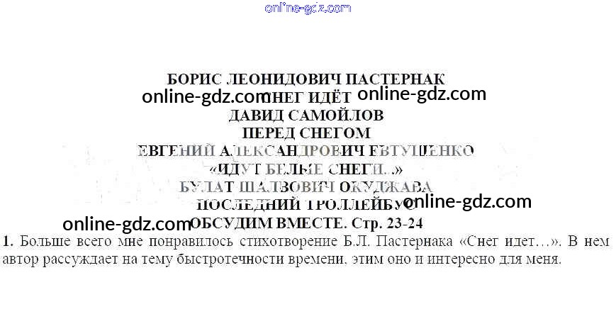 Готовые домашние задания по Литературе за 6 класс Учебник Ланин, Устинова Алгоритм успеха 2019 - Обсудим вместе Борис Леонидович Пастернак. Снег идёт 1