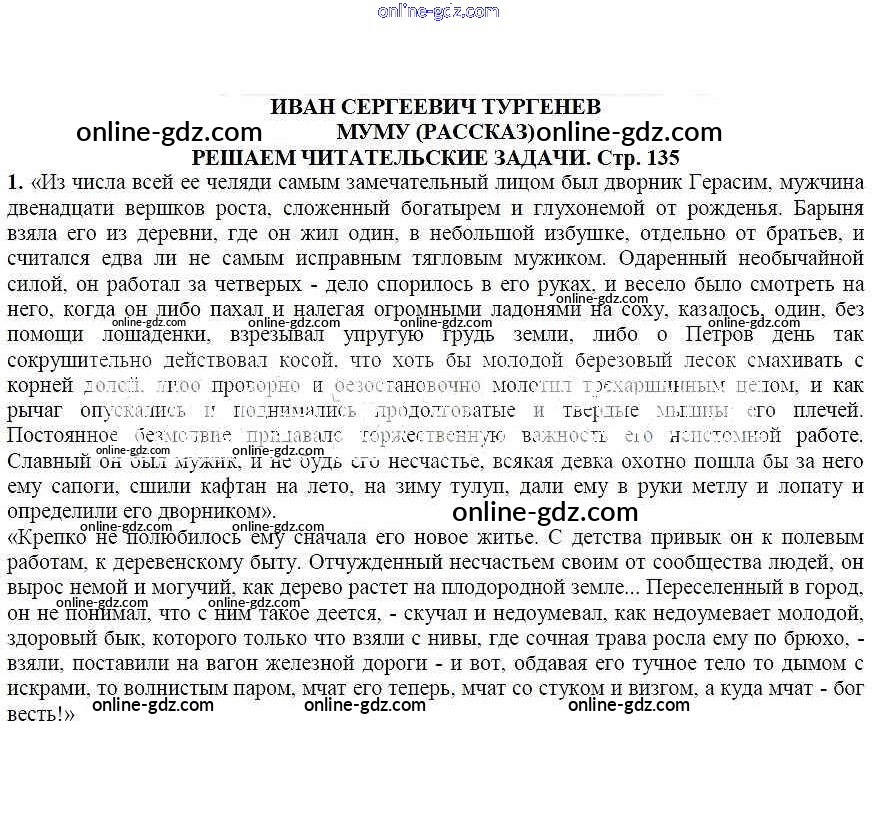 Готовые домашние задания по Литературе за 6 класс Учебник Ланин, Устинова Алгоритм успеха 2019 - Решаем читательские задачи Иван Сергеевич Тургенев. Муму (рассказ) 1