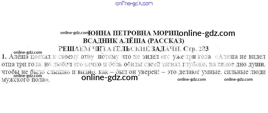 часть 2 / Юнна Петровна Мориц. Всадник Алёша (рассказ) / Решаем читательские задачи / 1