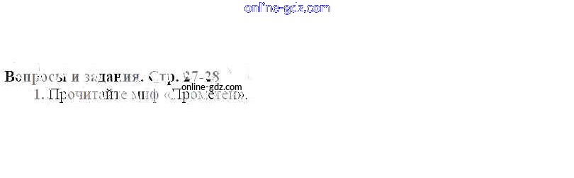 Готовые домашние задания по Литературе за 6 класс Учебник Меркин Инновационная школа 2016 - Вопросы и задания, стр. 27-28 Из греческой мифологии. Пять веков 1