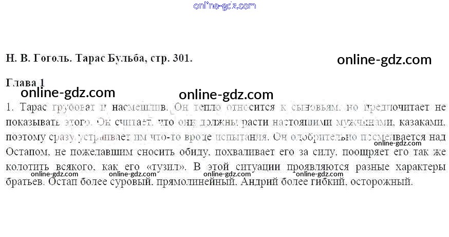 Готовые домашние задания по Литературе за 6 класс Учебник Меркин Инновационная школа 2016 - Глава 1 Н. В. Гоголь. Тарас Бульба, стр. 301 1