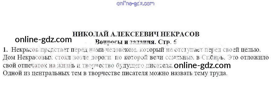 Готовые домашние задания по Литературе за 6 класс Учебник Меркин Инновационная школа 2016 - Вопросы и задания Н. А. Некрасов 1